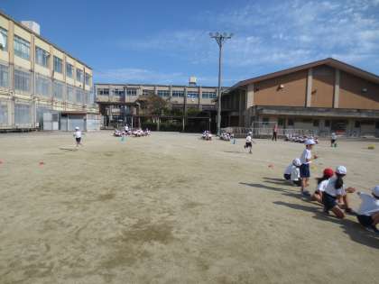 27日の体育参観に向けて,リレーの練習をしています。