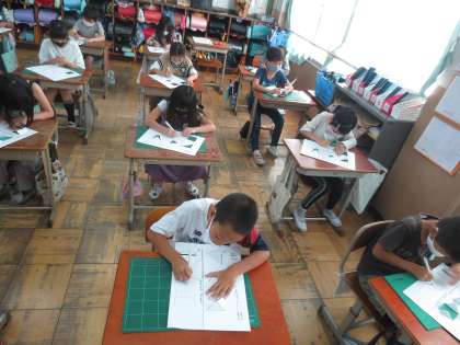 図画工作「まどを ひらいて」で,カッターナイフで紙を切ることに挑戦しました。