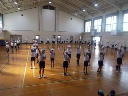 体育参観に向けて,去年も踊った「イロトリドリ」のダンスの練習を行いました。去年に全校ダンスの係をしていた子たちもいるので,慣れた様子でした。本番までに,一つひとつの動きを大きく,かっこよく踊れるように練習をがんばっています。