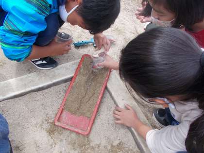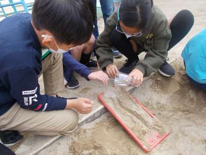 子どもたちと計画をたて,実験を行いました。流れる水にはどのようなはたらきがあるのか,また量によってどんな違いがあるのかを実験で調べました。久しぶりの自分たちでする実験に,嬉しそうな子どもたちでした。