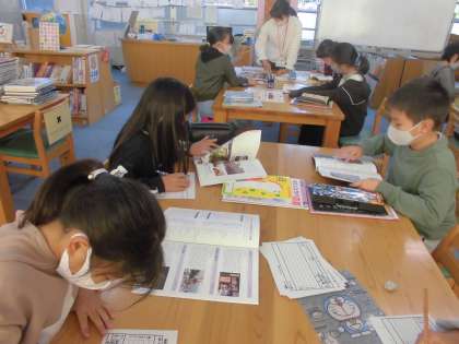 4年生は,祇園祭についてそれぞれの課題をもちながら調べ始めました。今回は右京中央図書館からも本を借りて進めています。