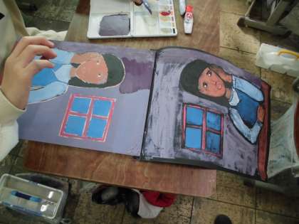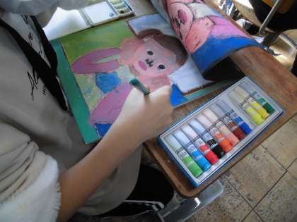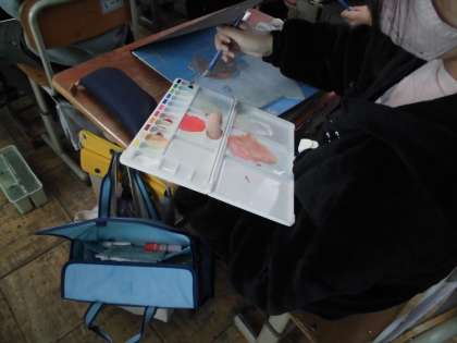 図画工作では,多色刷りの版画を作成しました。テーマは「頬杖をついた友達」です。各自友達が頬杖をつく様子をしっかりと観察しデッサンした後,版画版に掘り進めていきました。色塗りも単色の絵の具で塗るのではなく,混色してオリジナルの素敵な色合いを作りながら行いました。出来上がった作品は,3月の作品展で展示する予定です。お家の方に見てもらえるのが楽しみですね。