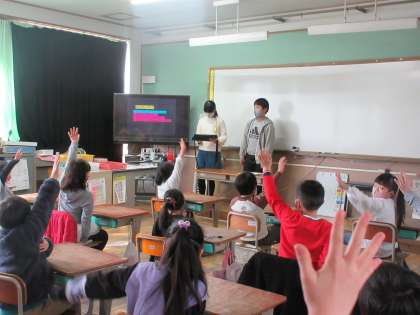 目の前にいる1年生〜5年生の反応を見られたことも子どもたちには刺激になったようで,「平和のことをしっかり伝えられた。」「質問や感想など反応がたくさんあって嬉しかった。」と話していました。