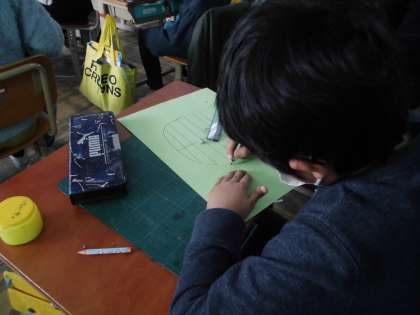図画工作科において『ひらいて広がるふしぎなせかい』の学習をしています。カッターナイフやハサミを使い,まどやとびらをひらく仕組み作りをしました。来週はその中に,絵をかいていきます。