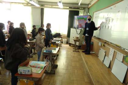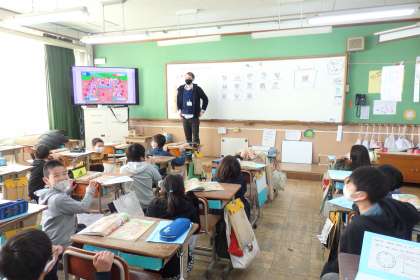 「music room」や「science room」など聞いたことがある物もあったようです。他にも,「校長室」や「事務室」などの言い方も知ることができました。聞きなれないため,英語で発音するとが難しいようでしたが,何度も繰り返し言い,慣れていきたいです。ゲームなどをして楽しみながら進めていきます。