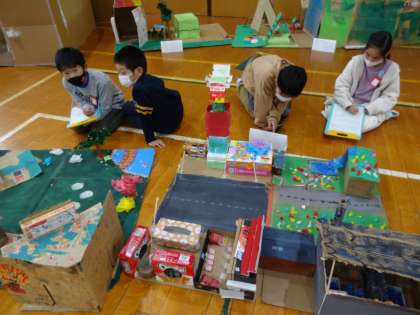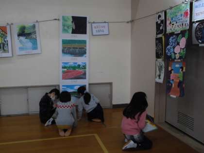 今日は,作品てんを学級の友だちとみに行きました。梅津小学校の期間げんていの美じゅつ館…!ということで,美じゅつ館でのマナーを意しきしながら,かんしょうしました。学年を問わず,お気に入りの作品を見つけ,もくもくとかんしょうカードを書いている様子の子どもたちでした。