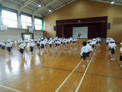 今日の体育の時間は,みんなで体操をしたり体を動かしたりしました。