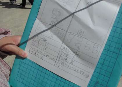 5年生の理科では,『天気の変化』の学習をしています。「天気は,雲のようすとどのような関係があるのだろう。」を学習問題として,時間が変わると,雲の動きはどう変化するかを観察しました。ワークシートには,雲のようすや動かない目印となる建物などををかいたり,雲のしめる量を数字で表したりすることができていました。