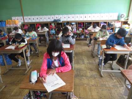 掃除が終わった後のぐんぐんタイムに,これまでに学習してきたことの復習プリントをしています。