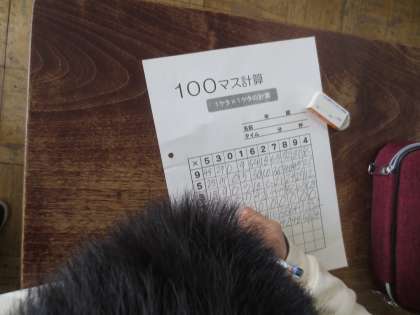 4年生は今,100ます計算にはまっていて,前回よりも1秒でもタイムを縮めようと頑張っています。