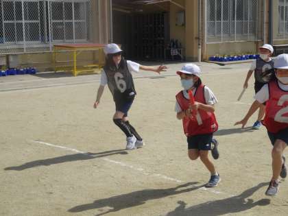 今日は体育「リレー」の最後の学習でした。最初に比べるとバトンパスが上手になってきました。最後にはお楽しみリレーをして楽しく終わることができました。