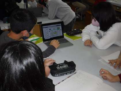 理科の「ものの燃え方」の学習でもグループごとの結果の交流にタブレットを使っています。一度にすべての結果を見ることができるので,「今までよりも分かりやすい」「もっとタブレットを使って慣れていきたい」と意欲的に取り組んでいます。これからもさまざまな場面でタブレットを活用していきたいと思います。
