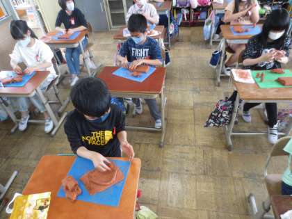 図画工作科の「立ち上がれ!ねん土!」で,粘土を使った作品作りをしました。