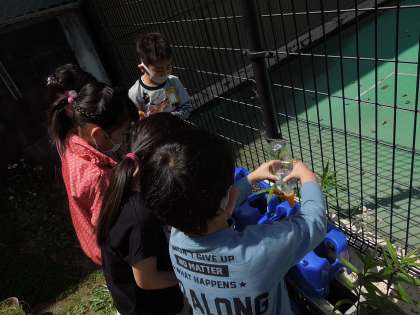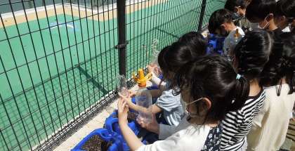 最後に水やりをしました。「大きくなあれ」と声をかけていました。