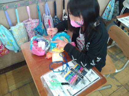 薄手の色紙をビニール袋に入れて,色々な形をつくりました。