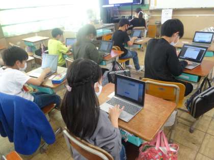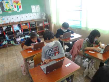 4年生のなって初めてタブレットを使いました。今日は,ログインの練習や調べ学習,タイピングの練習をしました。これからも様々な学習で積極的に使っていきたいと思います。