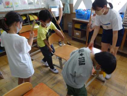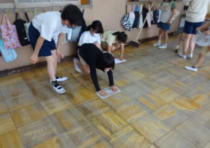 今日で一人一回ずつそうじの修行を経験しました。6年生がとてもていねいに教えてくれるので,1年生も真剣に取り組んでいます。