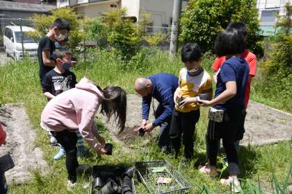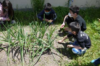 昨年植えた玉ねぎの苗が,ぐんぐん育ち,小さな玉ねぎになってきたのが見えてきました。収穫したら,絵をかいたり,調理したり,と楽しみがいっぱいです。