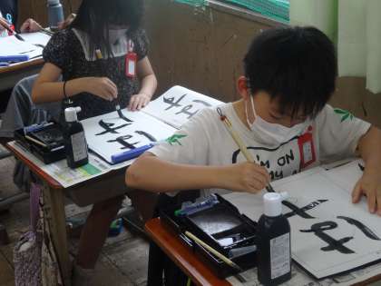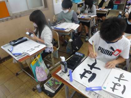 ひらがなの筆使いに気をつけて「はす」という文字を書きました。穂先の動かし方や結びの筆使いなどに子どもたちは苦戦しながらも一生懸命書いていました。これからも様々な字にチャレンジしてほしいと思います。