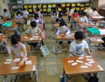 10の合成・分解はたし算やひき算の学習にも必要になってくるので,ぱっと答えられるように繰り返し練習していきたいと思います。おうちでも,トランプなどを使ってやってみてください。