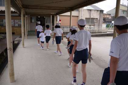 異学年が集まるむくのき学級は,高学年が先頭になって歩いています。