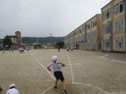 体力テストのソフトボール投げを行いました。昨年度よりも,記録が伸びて喜んでいる様子でした。来年の体力テストが楽しみです。