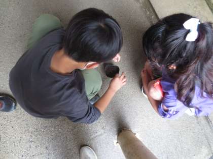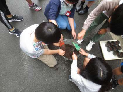 先日理科の時間に観察をしたツルレイシの種をまきました。