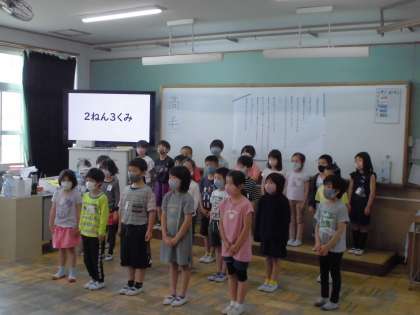 今週の金曜日,1年生を迎える会があります。今年はオンラインで行うため,その時に流す動画を撮影しました。2年生は昨年育ててできたあさがおの種と歌を練習してプレゼントすることにしました。