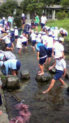 初めての体験で,なかなか魚をつかめない人もいました。