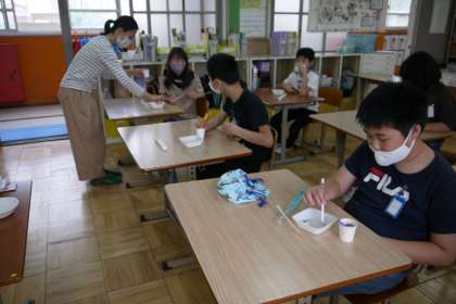 栄養教諭の先生に来ていただいて,食に関する指導をしていただきました。