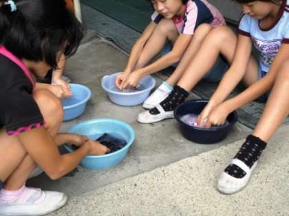 5校時に6年1組の子ども達が「洗濯」をしました。