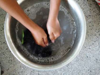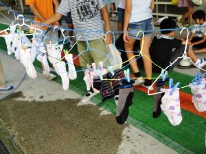 家庭科の学習の中にある単元で,どのクラスも自分の靴下を洗濯します。