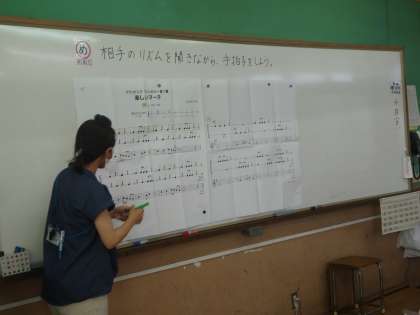 音楽の学習で,音楽に合わせてリズム打ちをしました。色々なリズムがあり,子どもたちも楽しそうに活動していました。次は,様々なリズムを組み合わせていきたいと思います。