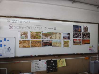 政治経済の学習が終了して,歴史の学習に入っていきます。まず初めにいろいろな時代の挿絵を年代順に並び替えてみました。挿絵に描かれているものをよく見て順番を想像していました。答え合わせをするときには,「え?なんでこの順番になるの?」「この間に何があったんだろう?」とこれから学習していく歴史に興味津々でした。これからの歴史の学習が楽しみです。