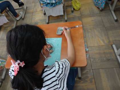 初めての筆を使う学習に,わくわくしていた様子でしたが,