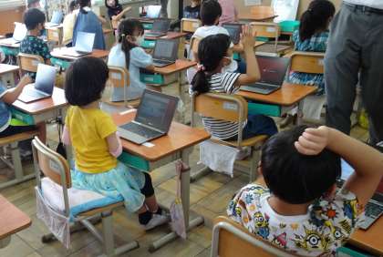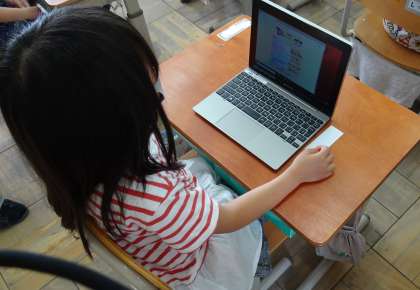 今日は,電源を入れてログインし,電源を切る方法を覚えることをめあてに学習しました。みんなよく話を聞いて一つ一つ丁寧に進めていました。一回みんなでやったあと,二回目は自分でもう一度電源を入れるところからやってみました。思っていたよりみんなスムーズにできていてびっくりしました。