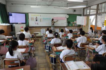 3年生になって始まったリコーダーの学習も進み,シとラとソの音が出せるようになりました。だんだん穴をふさぐことが難しくなってきましたが,一生懸命頑張っています。また,様々な大きさのリコーダーを見て,音を聴く機会があり,初めて本物を見て「こんなに大きなリコーダーがあるんだ。」「低い音がするね。」などの気づきがありました。いろいろな曲が吹けるようになるのが楽しみです。