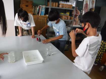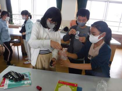 理科で体のつくりとはたらきについて学習しています。今日は食べたもののゆくえで,ご飯と唾液が混ざるとでんぷんはどうなるのかを実験しました。唾液と混ざることでヨウ素液の反応が薄くなり,子どもたちは「唾液がでんぷんを吸い取ったのでは・・・」と考えていました。「でんぷんとは別の物に変化することを知り,びっくりした。他の食べ物はどうなるのかな?」とこれからの学習に興味津々でした。