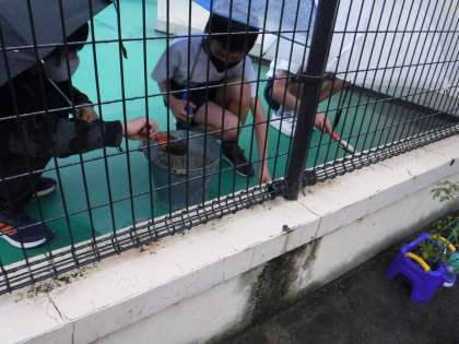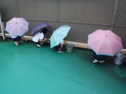 雨の中ではありましたが,プール掃除の第一弾を行いました。昨年度はコロナ禍のため水泳学習がありませんでしたので,2年ぶりのプール掃除です。周りの溝にはたくさんの泥がたまっていました。6年生は傘を差しながらできることを行いました。一生懸命泥をすくっていたので,みるみるうちにきれいになっていきました。明日は,汚れをこすります。きれいになったプールで水泳学習ができるように,頑張ります。