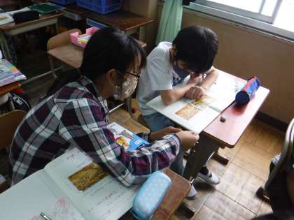 歴史の学習が始まり,縄文時代と弥生時代の学習をしました。今日はその二つの時代を比較して,今後の学習問題をつくります。復元された絵を手掛かりに気が付くことを交流する中で,「みんなで協力していた縄文時代から,なんか豪邸ができている弥生時代になっているから上下の関係ができたのかな?」「何か物を売っているようなところがあるけど店になっているのかな?」「柵や溝ができて,門には見張りの人がいる。何か敵がいるのかな?」など疑問に思ったことを交流しました。そこから,学習問題を作りました。少しずつ進化していく時代の様子を子どもたちと一緒に学習していきたいと思います。