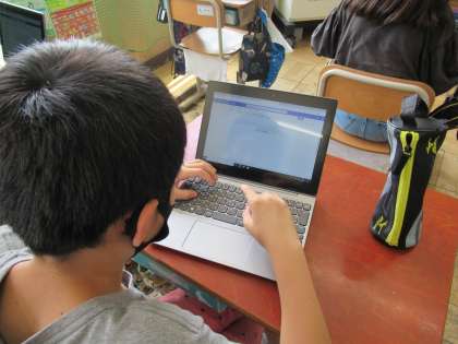 お昼の帯時間を使って,タブレットのタイピング練習を行いました。