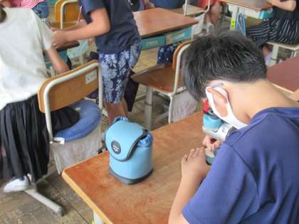 前回学習した双眼顕微鏡の使い方を生かして,メダカの卵の観察をしました。まず肉眼で卵を確認した子どもたちからは,「小さい!」「なんかつぶつぶしたのがいっぱいある!」という声が聞こえてきました。次に,顕微鏡を使って卵を細部まで観察しました。拡大された視界の中に見える卵を観察して観察カードにメモする姿は,真剣そのものでした。明日からは,休み時間などをつかって,卵がどのように変化しているのかを観察していきます。卵がどのように変化をしていくのかとても楽しみえです。