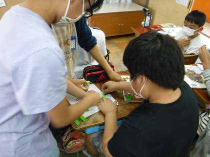 なかよしグループ会議に向けて準備をしました。今回は全員分の名札を作っています。6年生が心を込めて一つずつの名札を作りました。来週に初めての顔合わせがあります。とても楽しみです。また,当日に行う読み聞かせの練習もしました。お互いに読み合いをしながら,どうしたらうまく伝わるのか工夫をしていました。