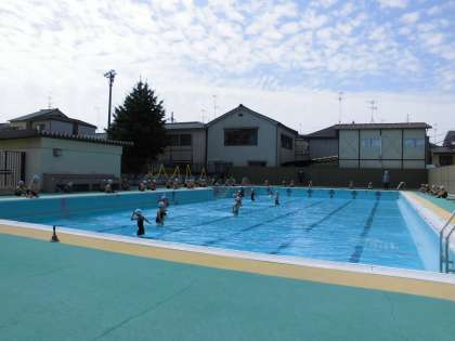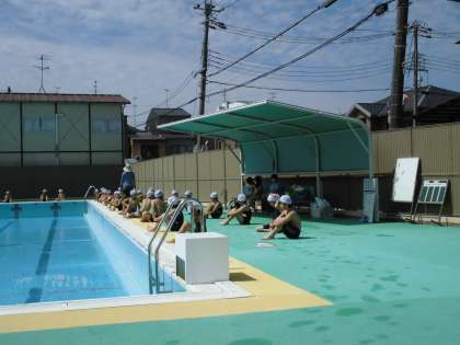 今日はプール開きでした。2年生は梅津小学校に入学してから初めての水泳学習です。今日は準備体操,足洗い,腰洗い,シャワーの流れの確認をしたり,かけっこなどの水慣れ,水のかけ合いなどの水遊びをしたりしました。何もかもが初めてで目を輝かせて楽しんでいました。楽しいことだけではなく,命を守るための大切なルールも,今日はたくさん学びました。そのルールにも授業を重ねるごとに慣れていってほしいです。
