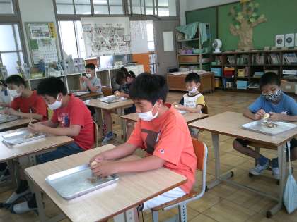 畑で収穫した玉ねぎを使って調理実習をしました。
