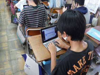 ぐんぐんタイムでは,タブレットのタイピングに慣れるように1分間チャレンジを行っています。1分間で,五十音を打っていきます。どこまで打てるか日々自分への挑戦です。日に日に打てる文字が増えてきて,子どもたちは喜んでいます。チャレンジを通して,タブレットのタイピングに抵抗がなくなっていくことを願っています。