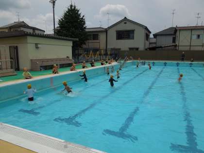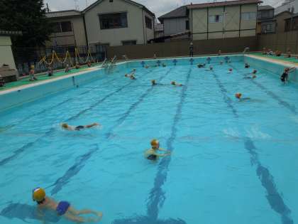 今日は,1組と3組でプールに入りました。