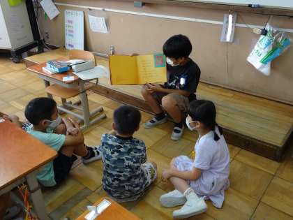 自己紹介をしたり,6年生が読み聞かせをしたりしてくれました。