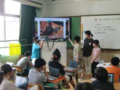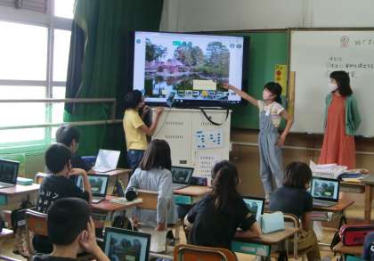いろどりタイムの学習で,自分たちが調べた梅津のステキについてまとめた資料の発表をしました。タブレットを使った発表で,子どもたちは難しさを感じながらもグループで協力して発表することができました。