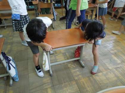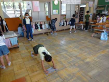 掃除時間が終わると「がんばったから汗が出てきた!」と言っていました。